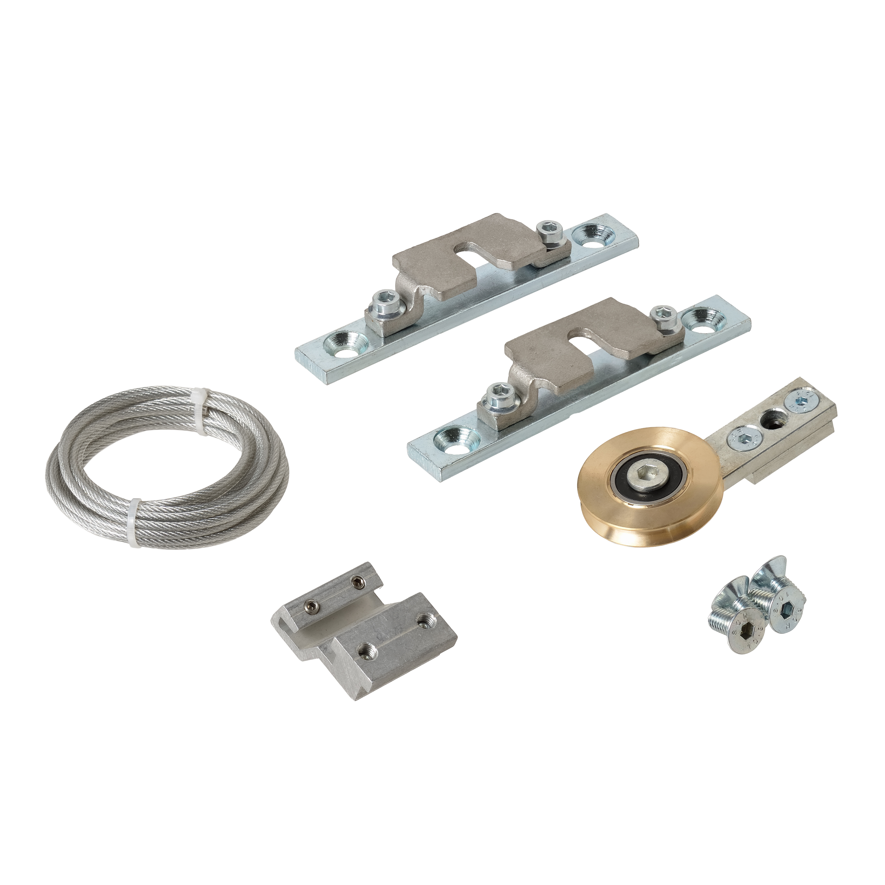 Подвесы дверные для 1 створки (внешней) в комплекте со стальным тросом и роликом, SLT, сталь,